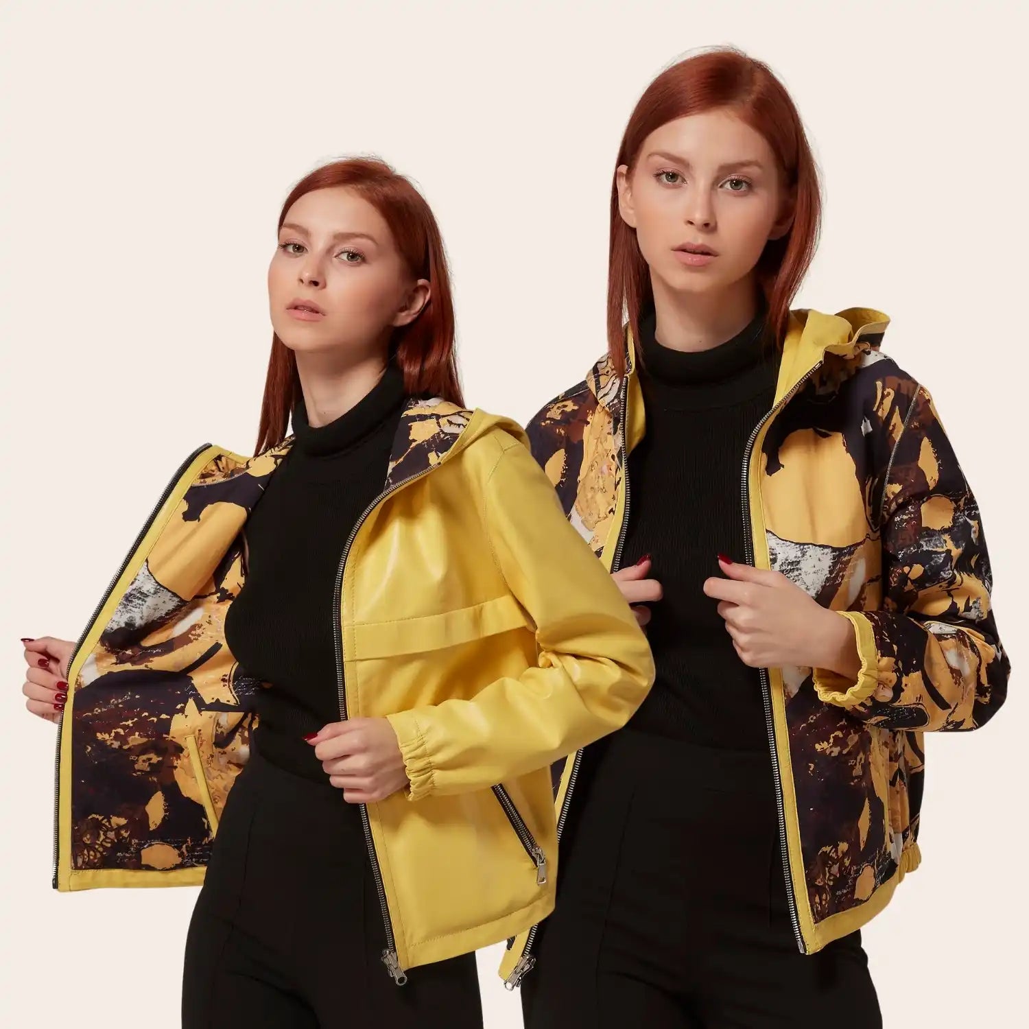 Yellow Cropped Leather Motorcycle Jacket Puffy Shoulders - Rock & Roll Royalty