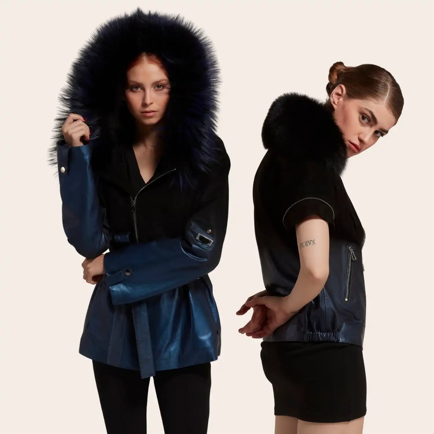 Black Lambskin Leather Shearling Motorcycle Jacket
