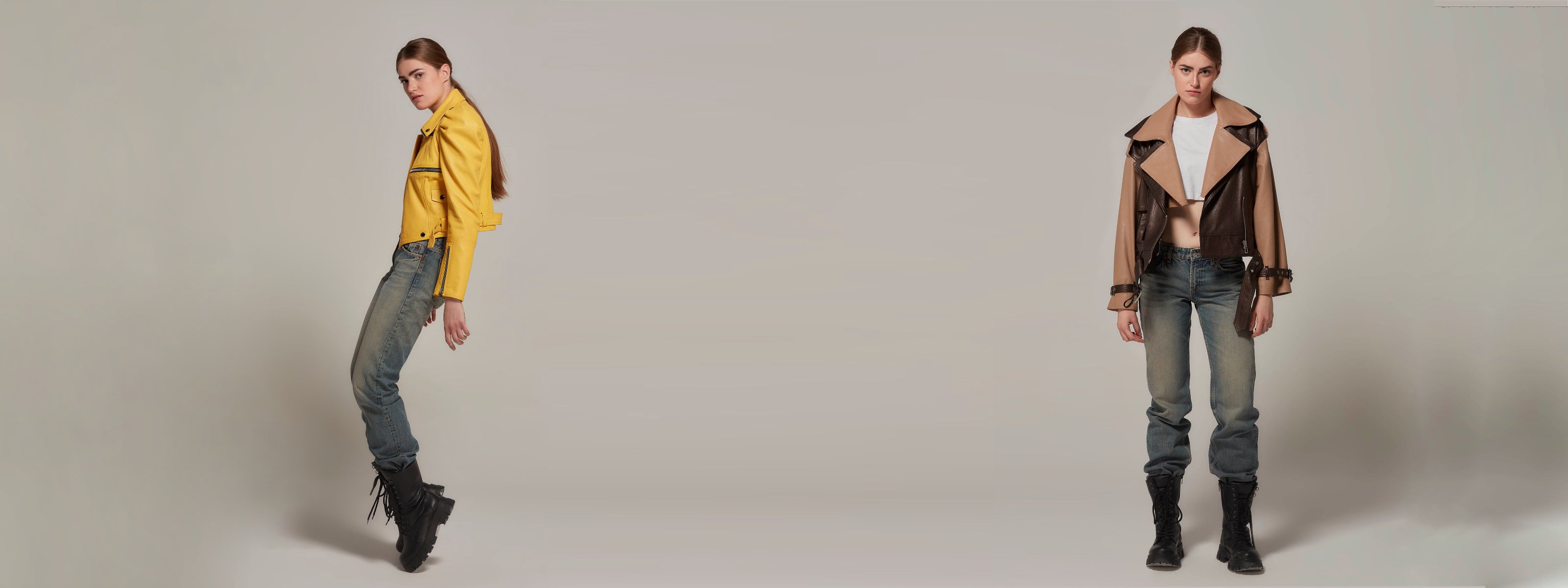 Yellow Cropped Leather Motorcycle Jacket Puffy Shoulders - Rock & Roll Royalty